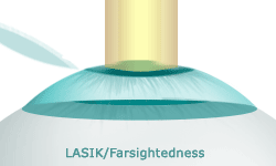 If you're farsighted, the excimer laser will steepen your central cornea. The laser will remove tissue from the corneal area to acheieve this.